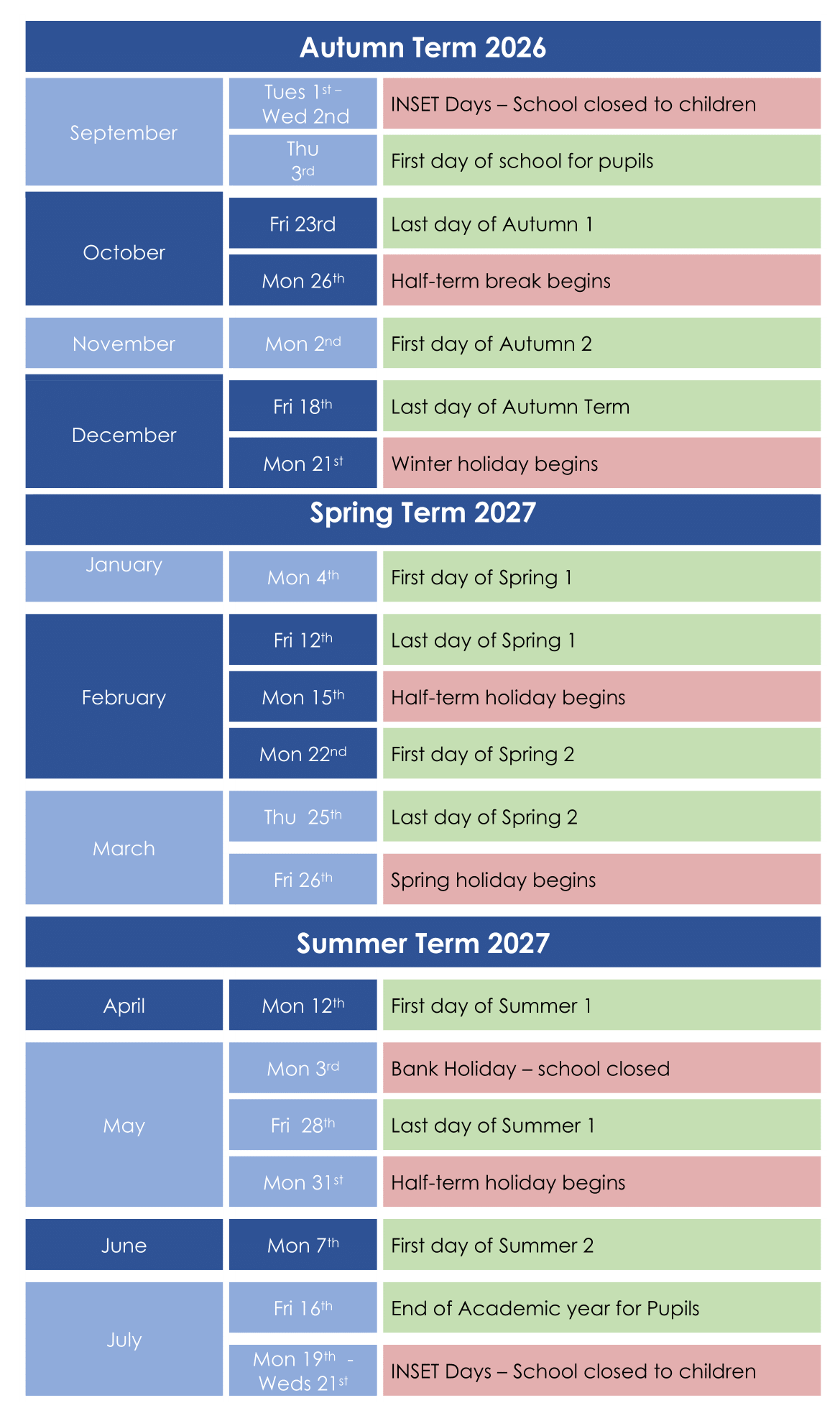 TERM DATES 2026/2027